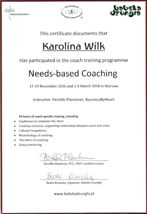 Needs-Based Coaching – Pernille Plantener (zobacz certyfikat)