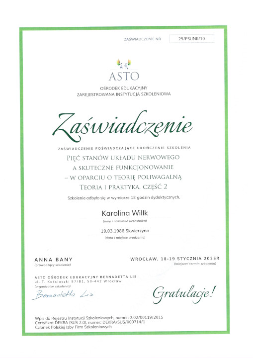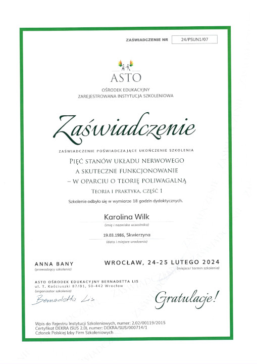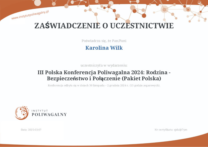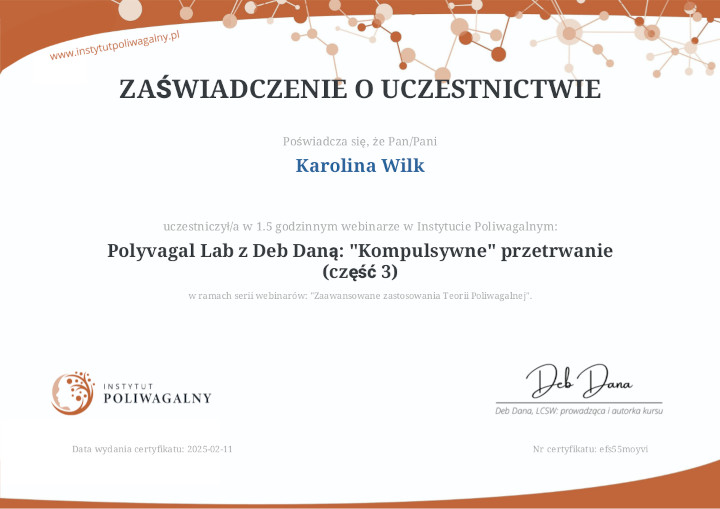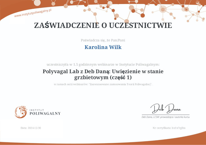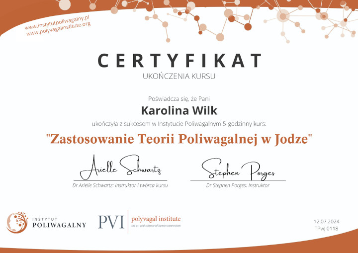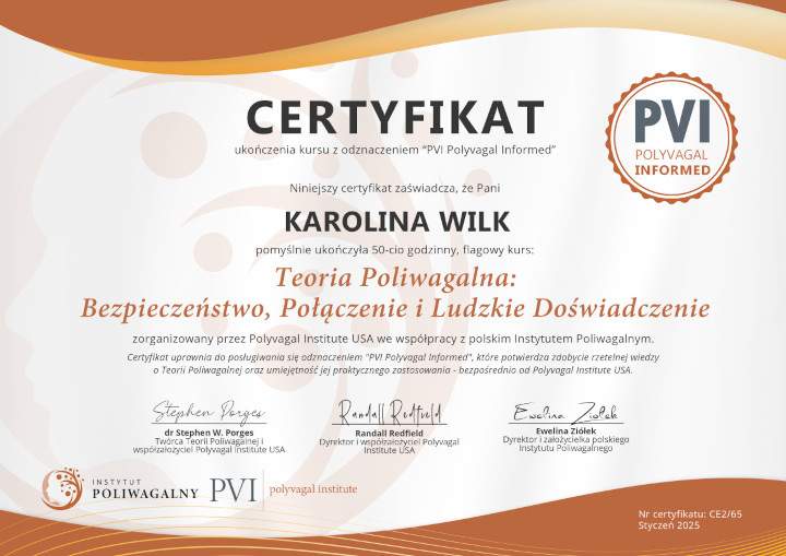 Kurs z Teorii Poliwagalnej z certyfikatem PVI USA: Bezpieczeństwo, połączenie i ludzkie doświadczenie – Instytut Poliwagalny (zobacz certyfikat)