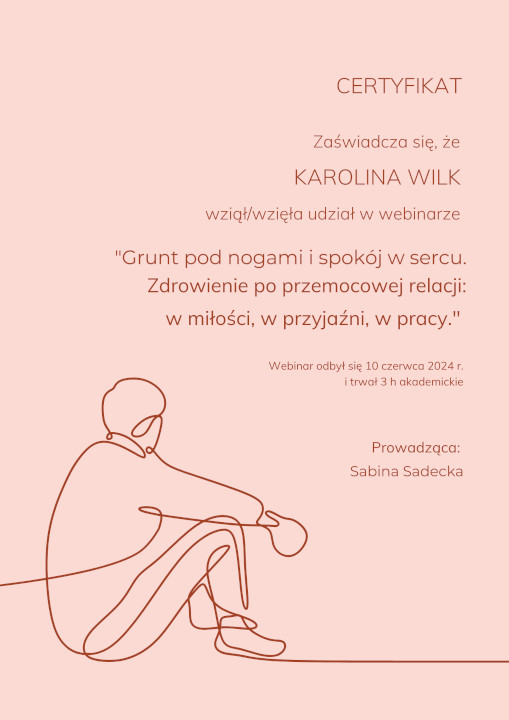 Grunt pod nogami i spokój w sercu. Zdrowienie po przemocowej relacji: w miłości, w przyjaźni, w pracy. – Sabina Sadecka (zobacz certyfikat)