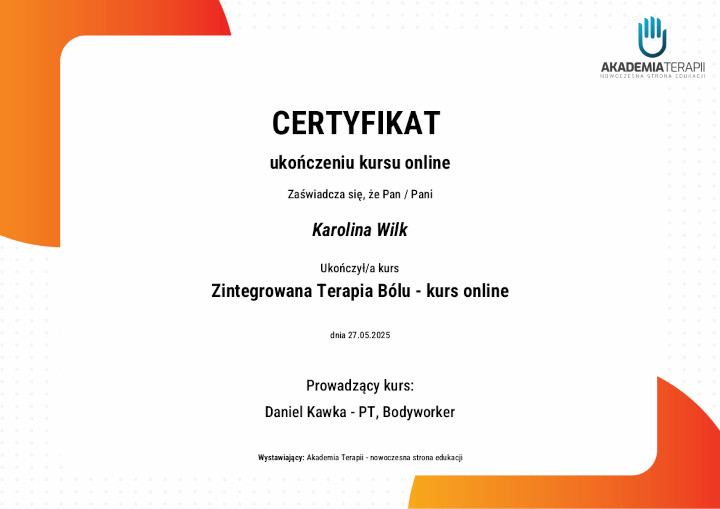 Zintegrowana terapia bólu – Daniel Kawka (zobacz certyfikat)