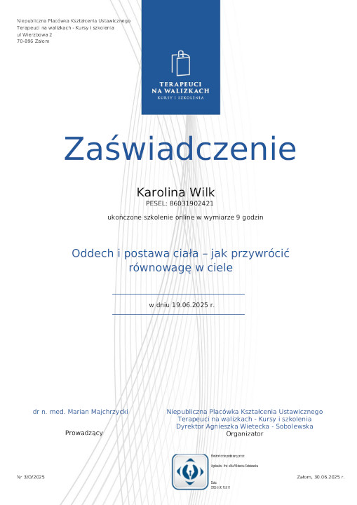 Oddech i postawa ciała – jak przywrócić równowagę w ciele – dr n. med. Marian Majchrzycki (zobacz zaświadczenie)