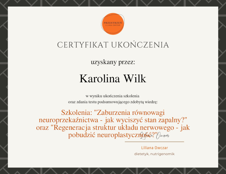 Zaburzenia równowagi neuroprzekaźnictwa – jak wyciszyć stan zapalny? – Liliana Owczar (zobacz certyfikat)