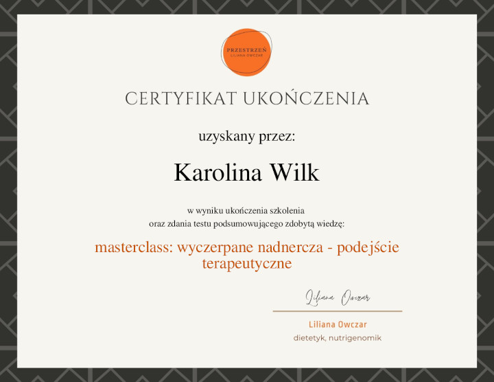 Wyczerpane nadnercza – podejście terapeutyczne – Liliana Owczar (zobacz certyfikat)
